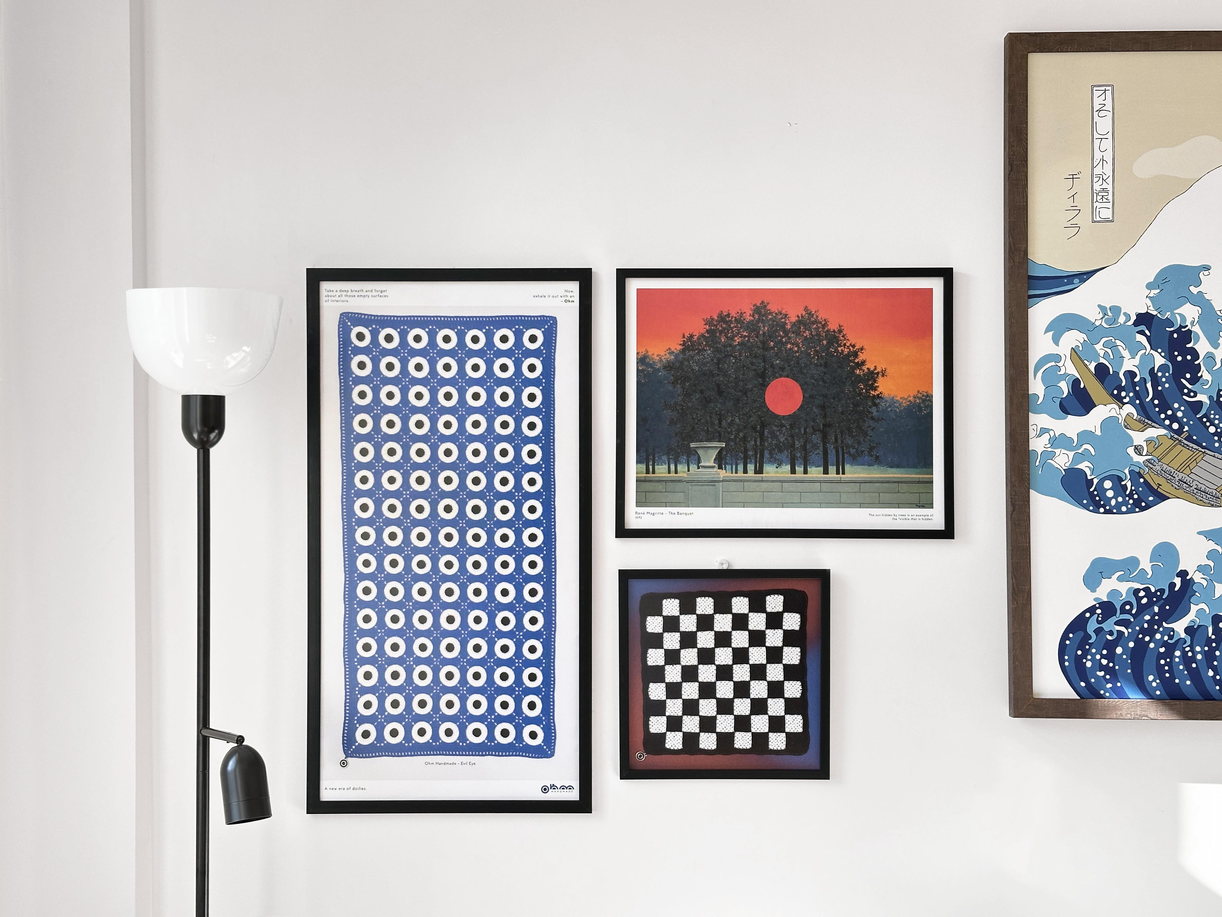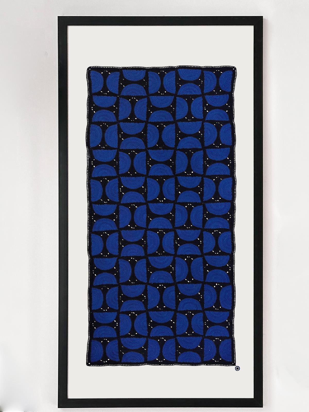 Wouldn't you love to display your Ohm Handmade runner on your wall? Your chosen Ohm Handmade doily is sewn onto navy blue or light grey linen fabric in our atelier, transforming it into a hangable work of art. Add color to your walls with Ohm Handmade, bringing a brand new design language to the art of lace.